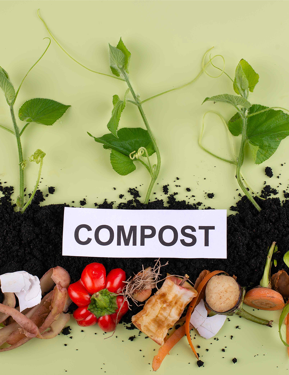 In-house bio-decomposers transform organic waste into compost, minimizing landfill burden and promoting circular waste management.